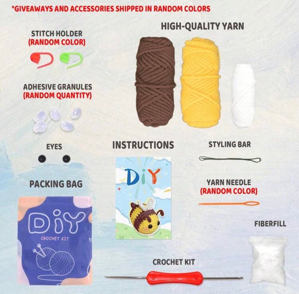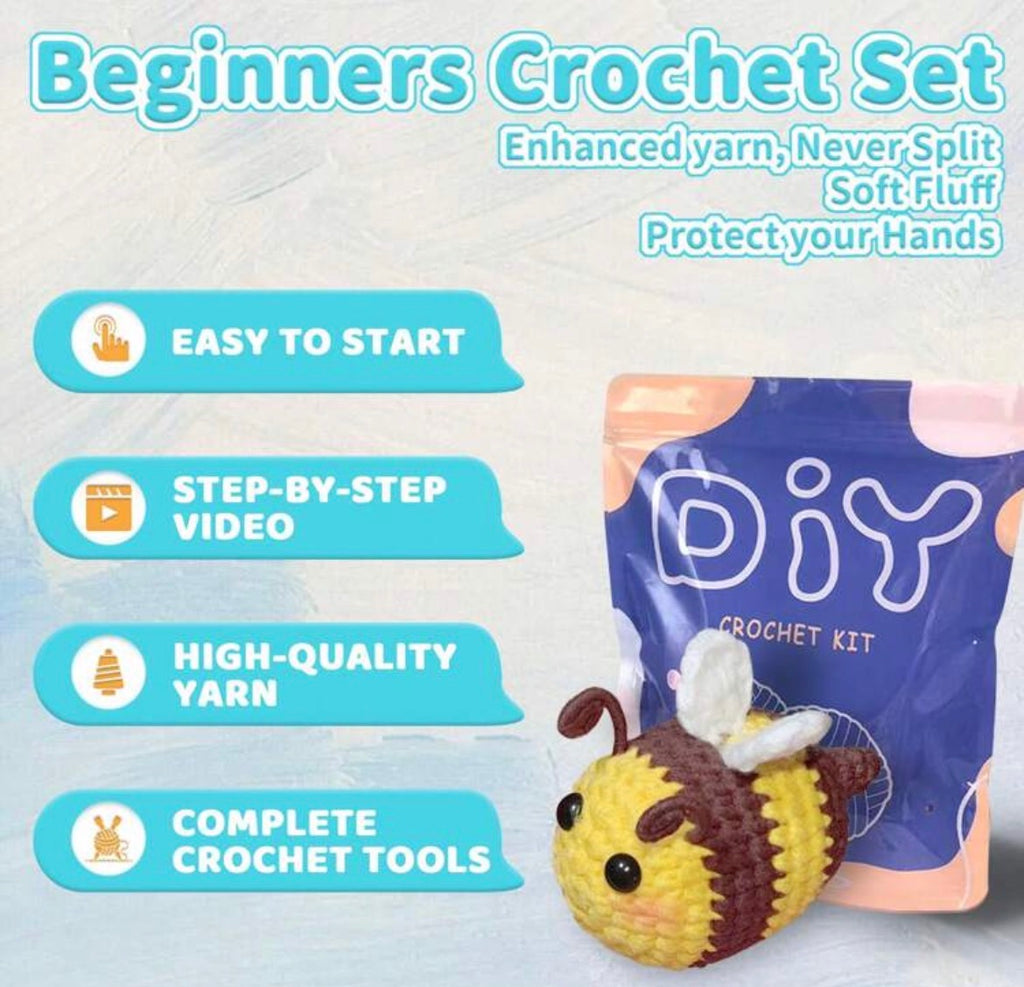 Cute Bee Crochet Kit for Beginners - All-in-One Complete Crochet Set with Yarn, Hook, Pattern & Video Tutorial